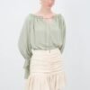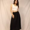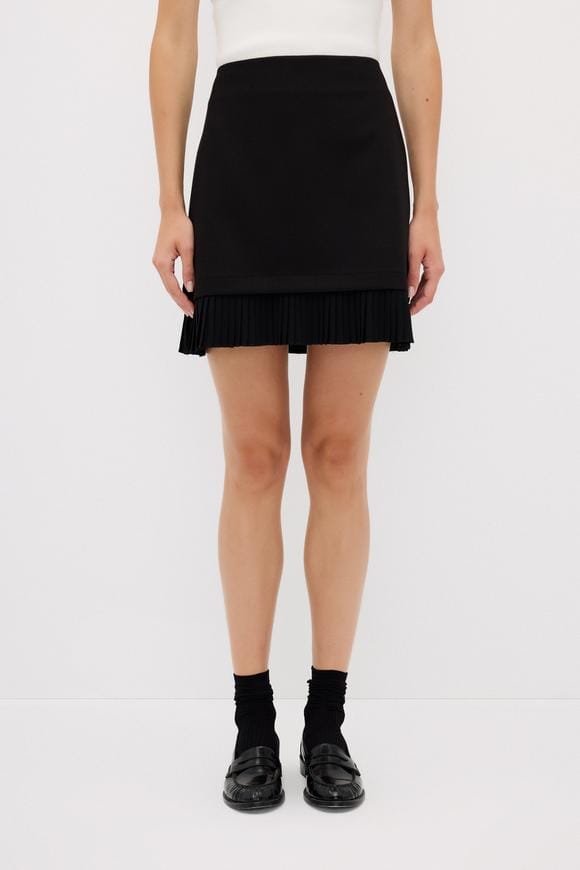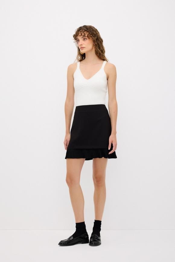 A modern take on preppy style, this outfit features a crisp white button-up shirt paired with a tailored grey pleated mini skirt. The clean lines and subtle detailing create a refined yet effortless silhouette, perfect for both casual outings and smart daytime looks. Styled with statement black mid-calf boots, the ensemble strikes the perfect balance between classic and contemporary.