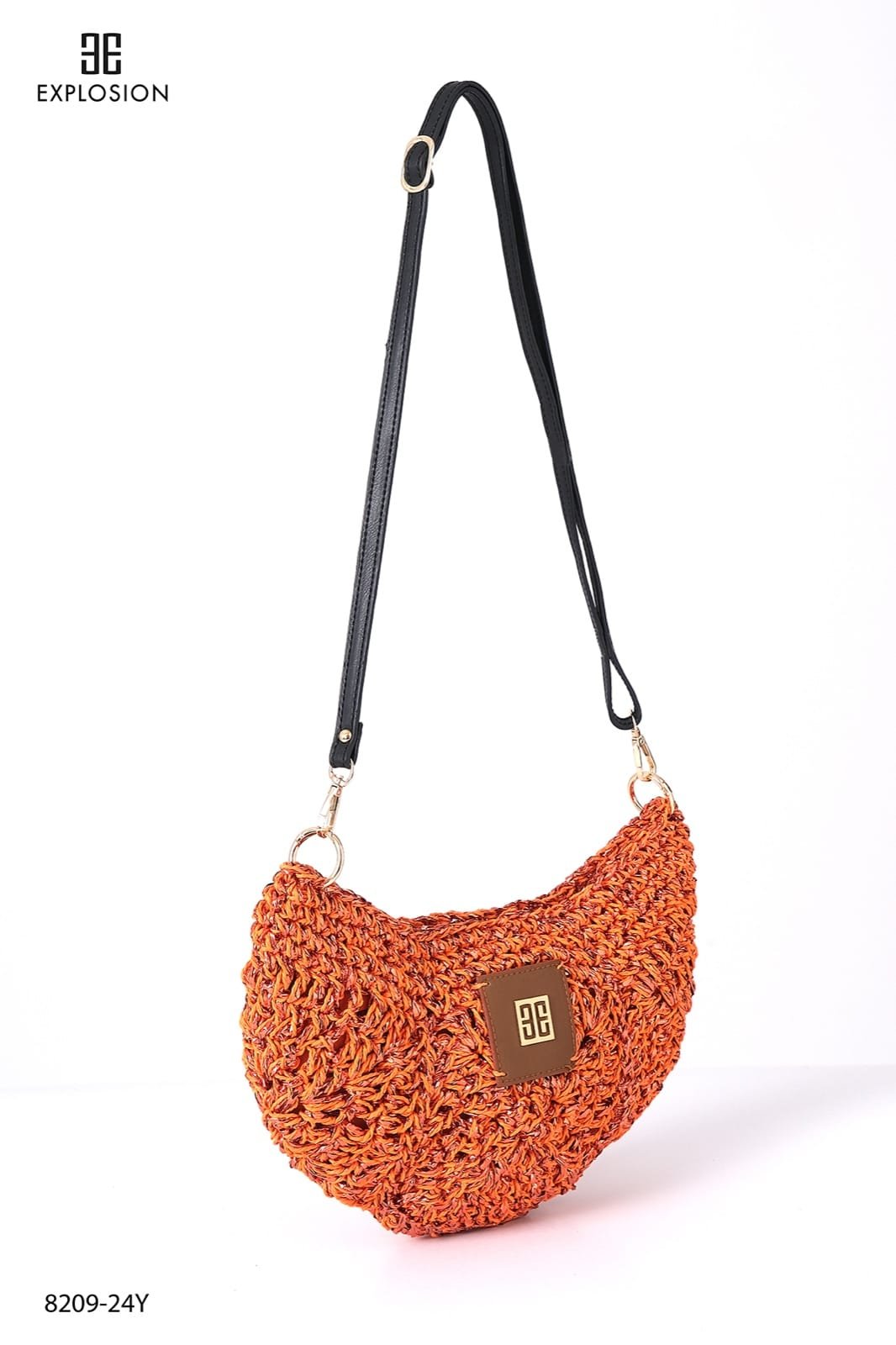 Add a vibrant touch to your everyday style with this chic orange woven shoulder bag. Crafted with a unique textured finish, it combines a relaxed, natural look with modern elegance. The adjustable black strap ensures comfort and versatility, while the structured silhouette keeps it practical for daily use. Finished with a bold metallic logo accent, this bag is perfect for carrying your essentials with effortless flair.