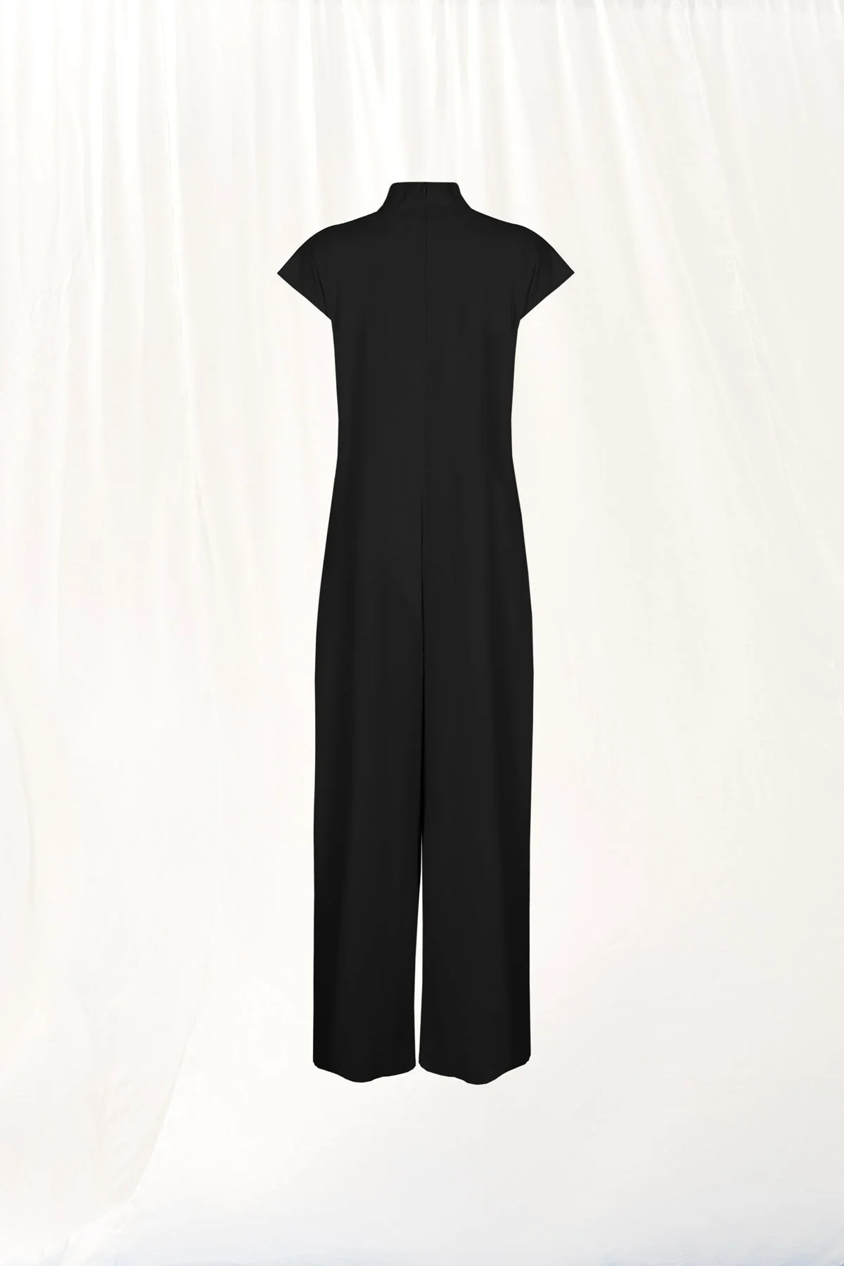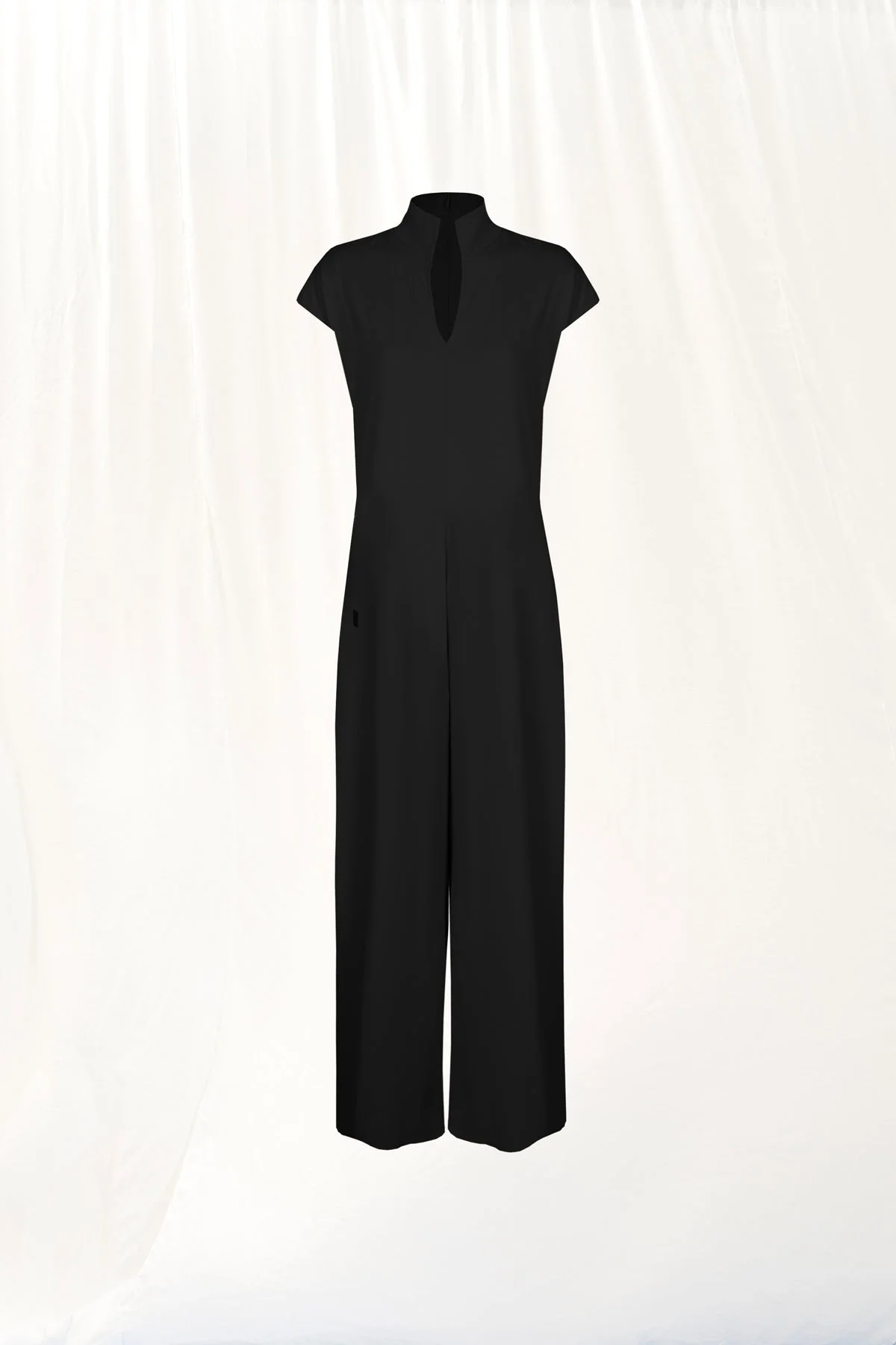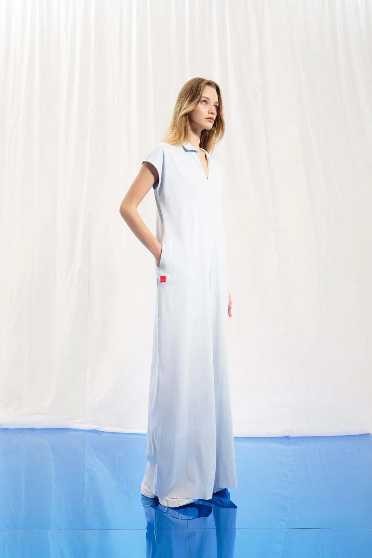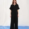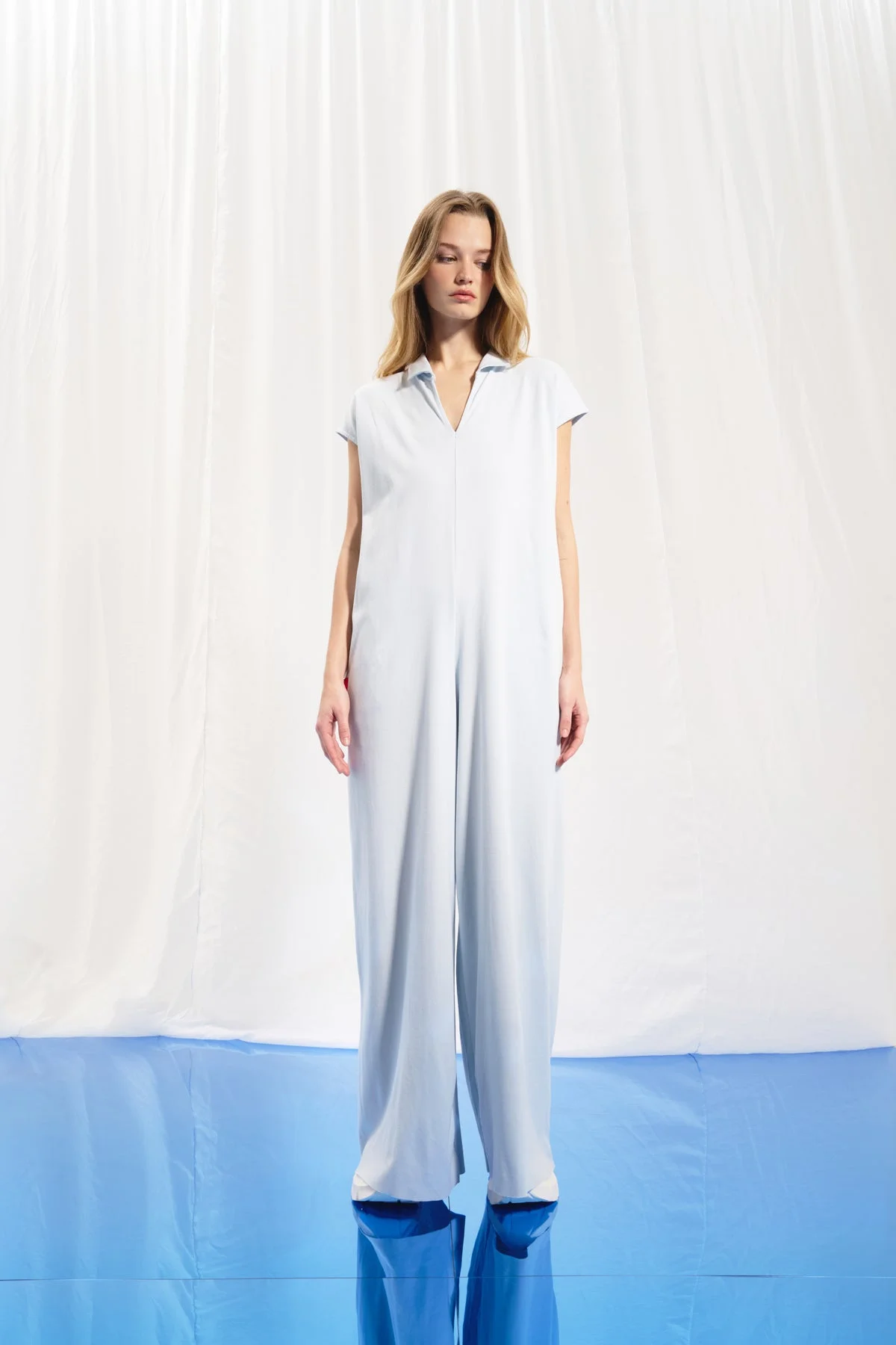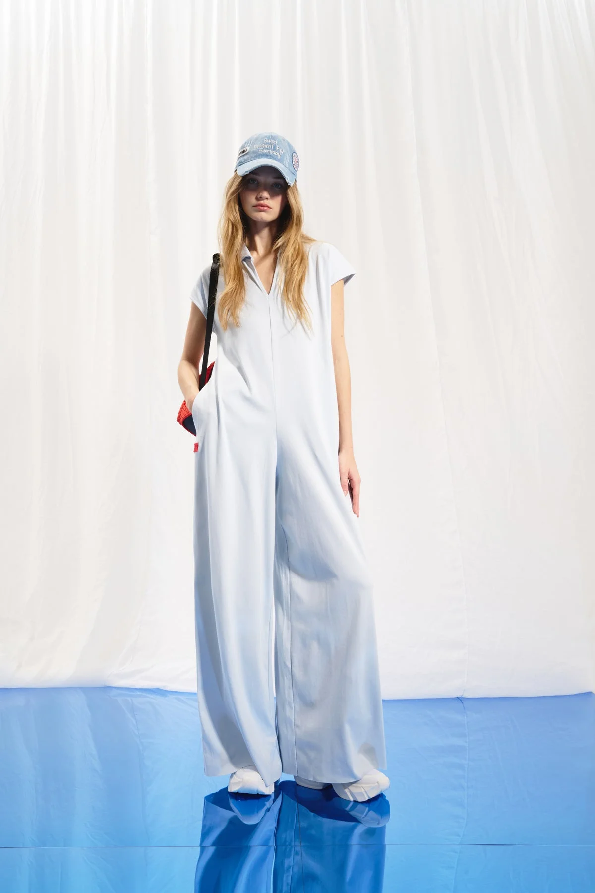 Effortless and chic, this wide-leg jumpsuit comes in a soft sky-blue and also black shade with a collared neckline, short sleeves, and side pockets. Designed in a relaxed fit for all-day comfort and a modern minimal look.