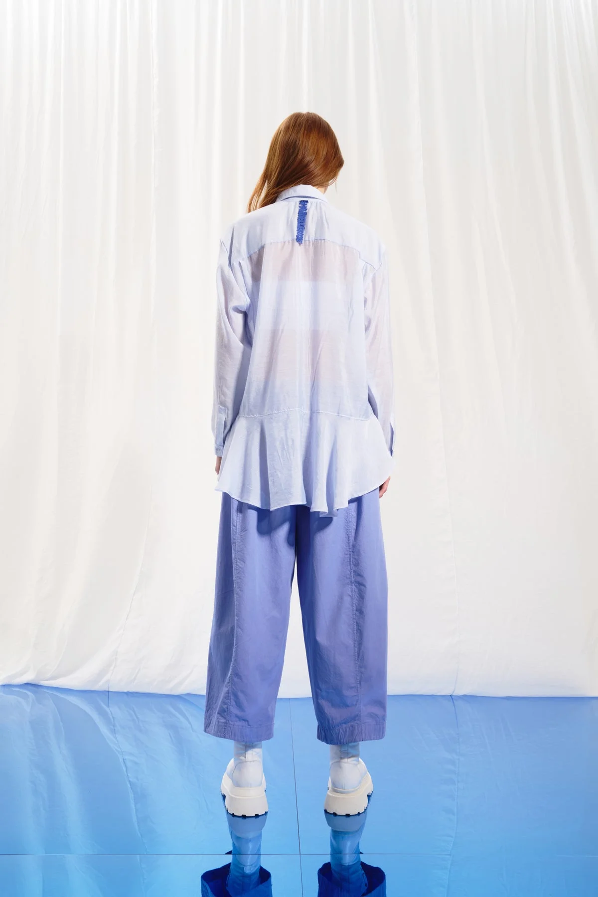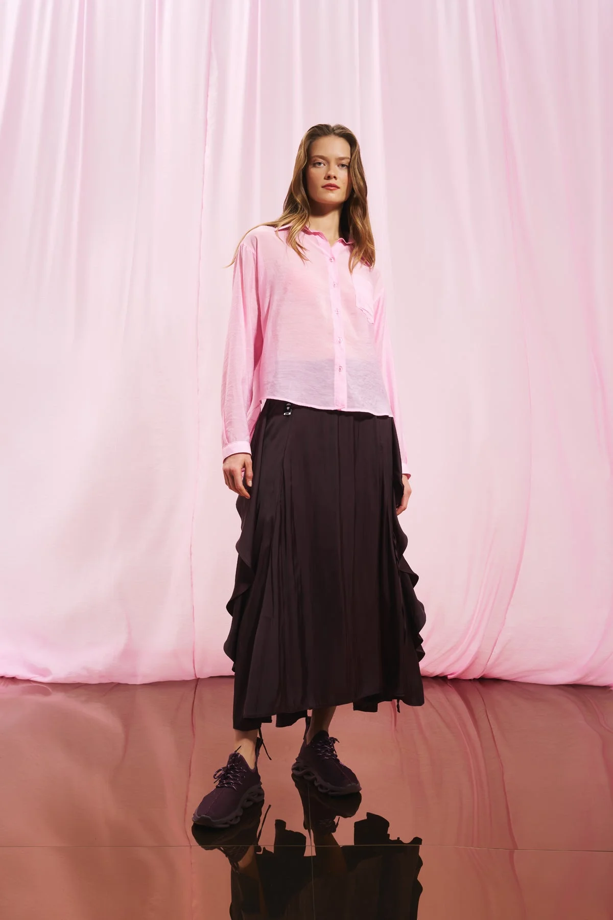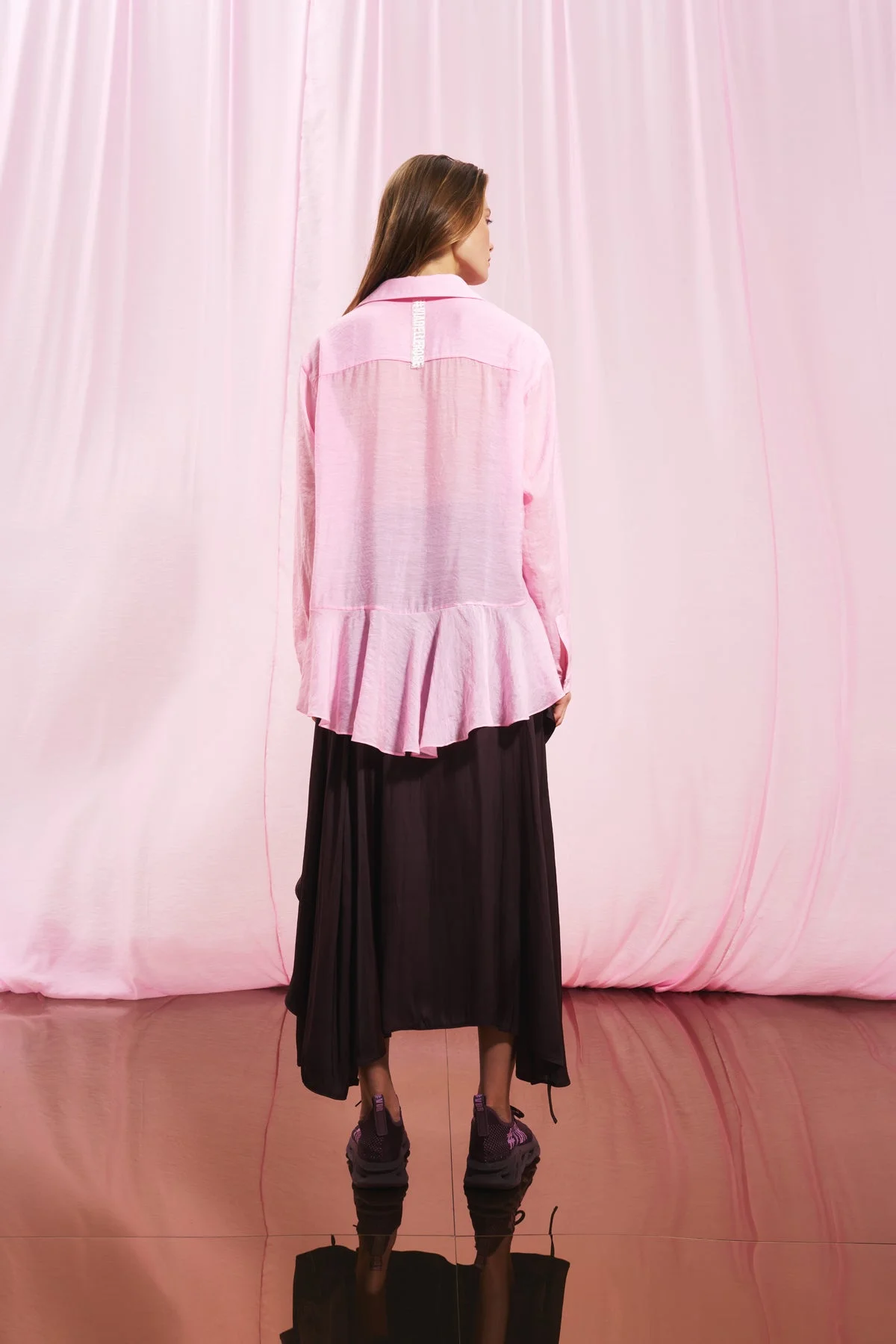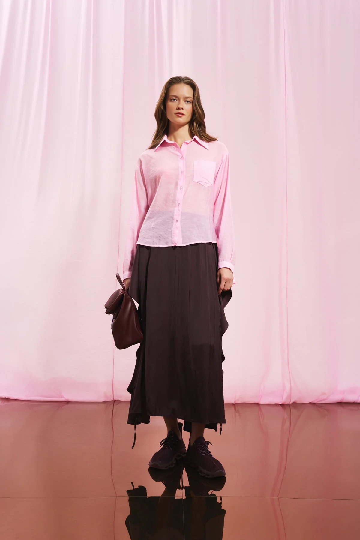 Introducing the Sheer Button-Down Shirt with Flared Hem – a versatile piece designed to elevate your everyday wardrobe. This lightweight, breezy shirt combines timeless button-down sophistication with a playful flared hem that adds a touch of flair to your ensemble. Perfect for casual outings, office attire, or evening events, this shirt effortlessly blends elegance and modern fashion for any occasion.